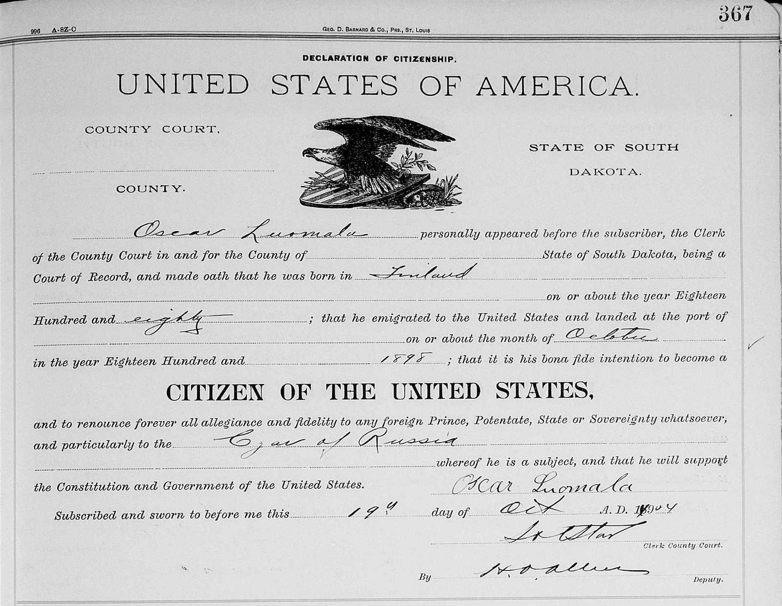 Oskari Frithiof Luomala teki useamman reissun Amerikkaan. Passiluettelossa hän on päivämäärillä 16.9.1898 sekä 4.10.1907, minkä lisäksi matkustajaluettelosta löytyy ”Oskar Luomala” vuosille 1901 ja 1906, edemmässä maininta Vaasan läänistä ja jäljemmässä mainita Kaustisesta. Vuonna 1880 syntyneen Oskar Luomalan mainitaan menneen Duluthiin 1901, ja siellä samanniminen mies olisi helmikuussa 1902 joutunut lakitupaan syytettynä lompakon viemisestä yhdessä Sam (Samuel?) Kentalan kanssa. Juttu ei pitänyt vettä ja syytteet hylättiin saman tien, kertoi The Duluth News Tribune 25.2.1902. On epäselvää, onko varmasti kyseessä sama Oskar, mutta kumppanin sukunimi on kuitenkin kaustislainen Kentala. Helmikuussa 1906 Etelä-Dakotan Lead Daily Call -lehti kirjoittaa, että Oscar Luomala on lähdössä…